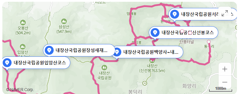 1. 내장사 탐방로 (초보자 추천)