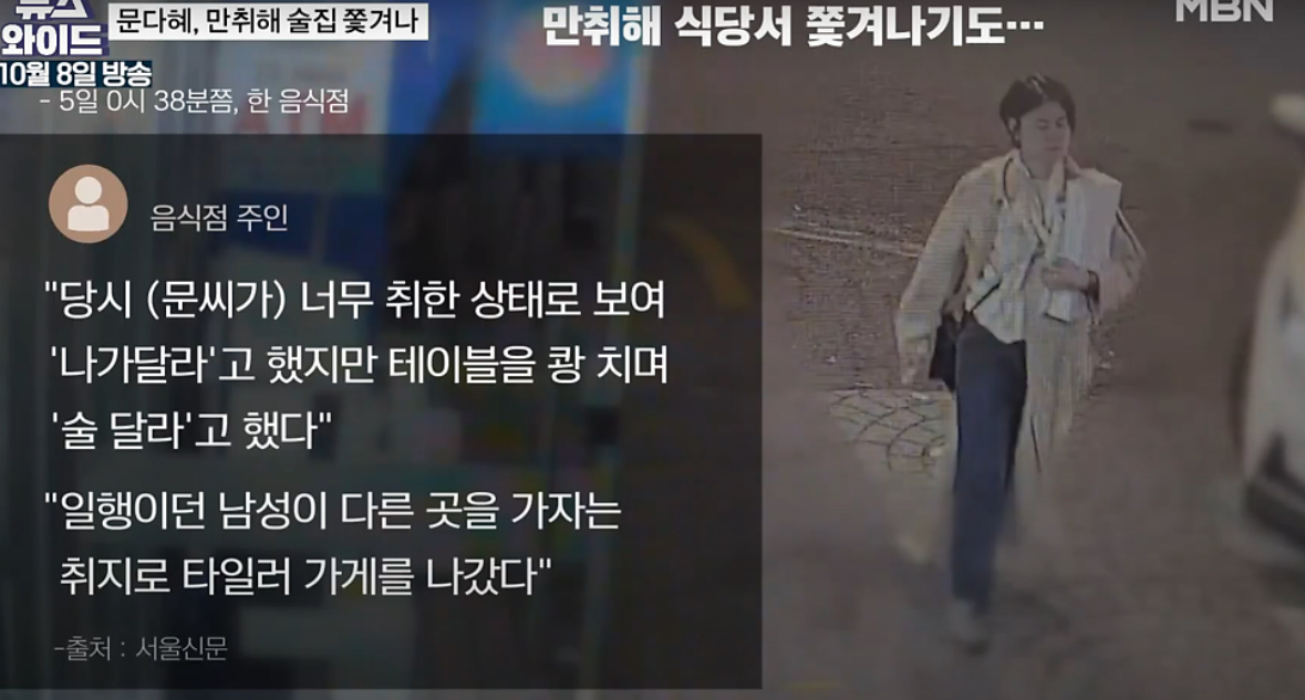 당시 문다혜가 너무 취한 상태로 보여 나가달라고 주인이 말했지만