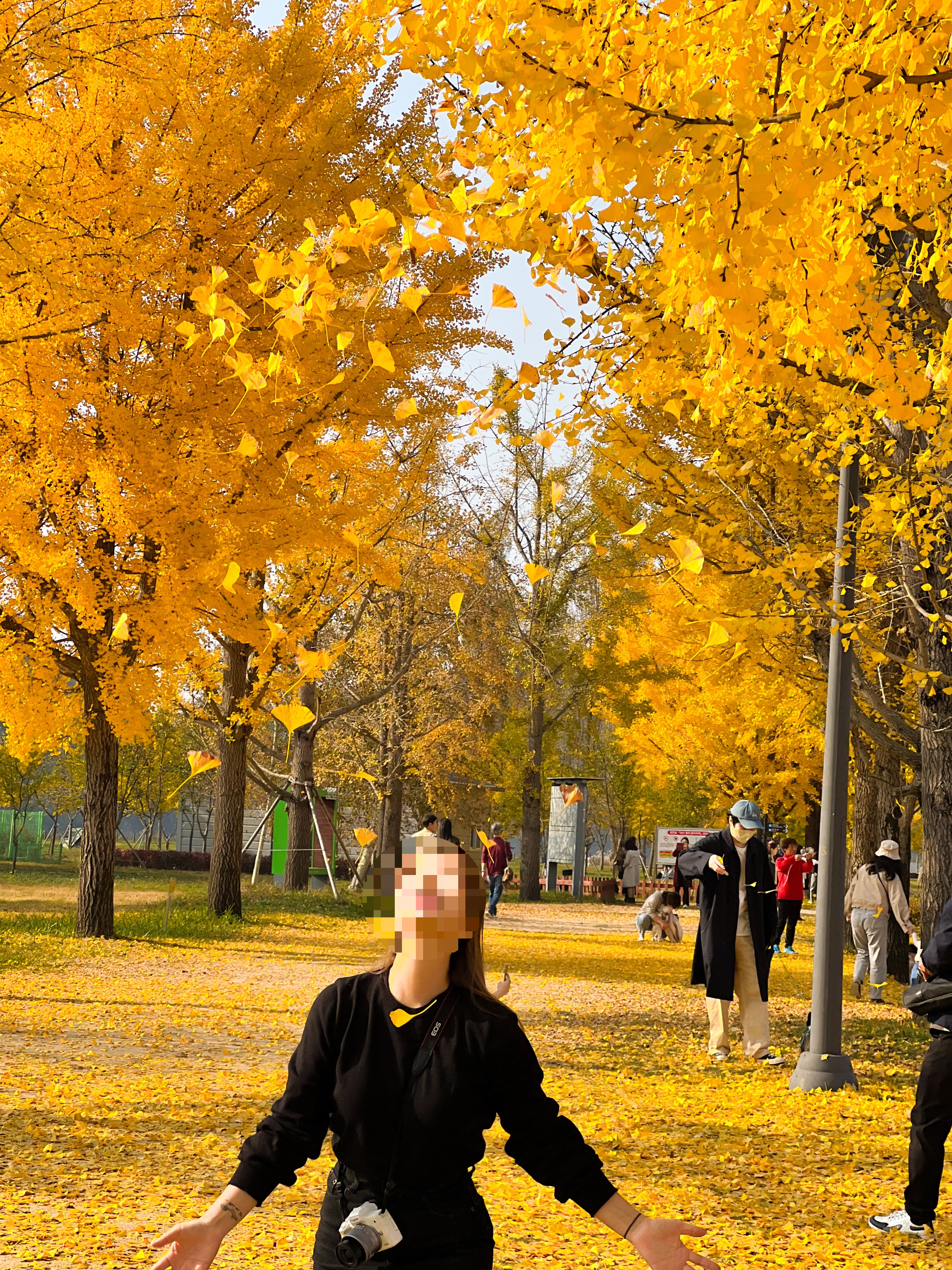 바람 살랑 한번 불어줄 때 노란 잎이 떨어질 때를 노려서 사진 찍는 분들도 많았다.나는 사진을 찍히는 것도 찍는 것도 어색하지만 열심히 찍었던..