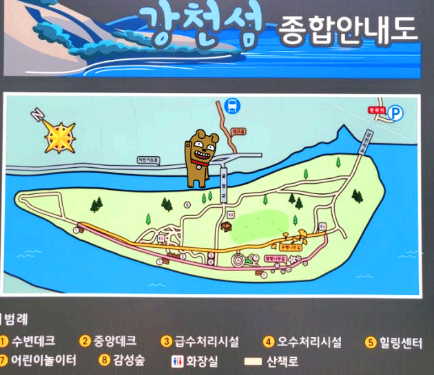 강천섬으로 들어오는 다리는 2곳인데 안내도로 보면 왼쪽 다리로 건너가야 한다.