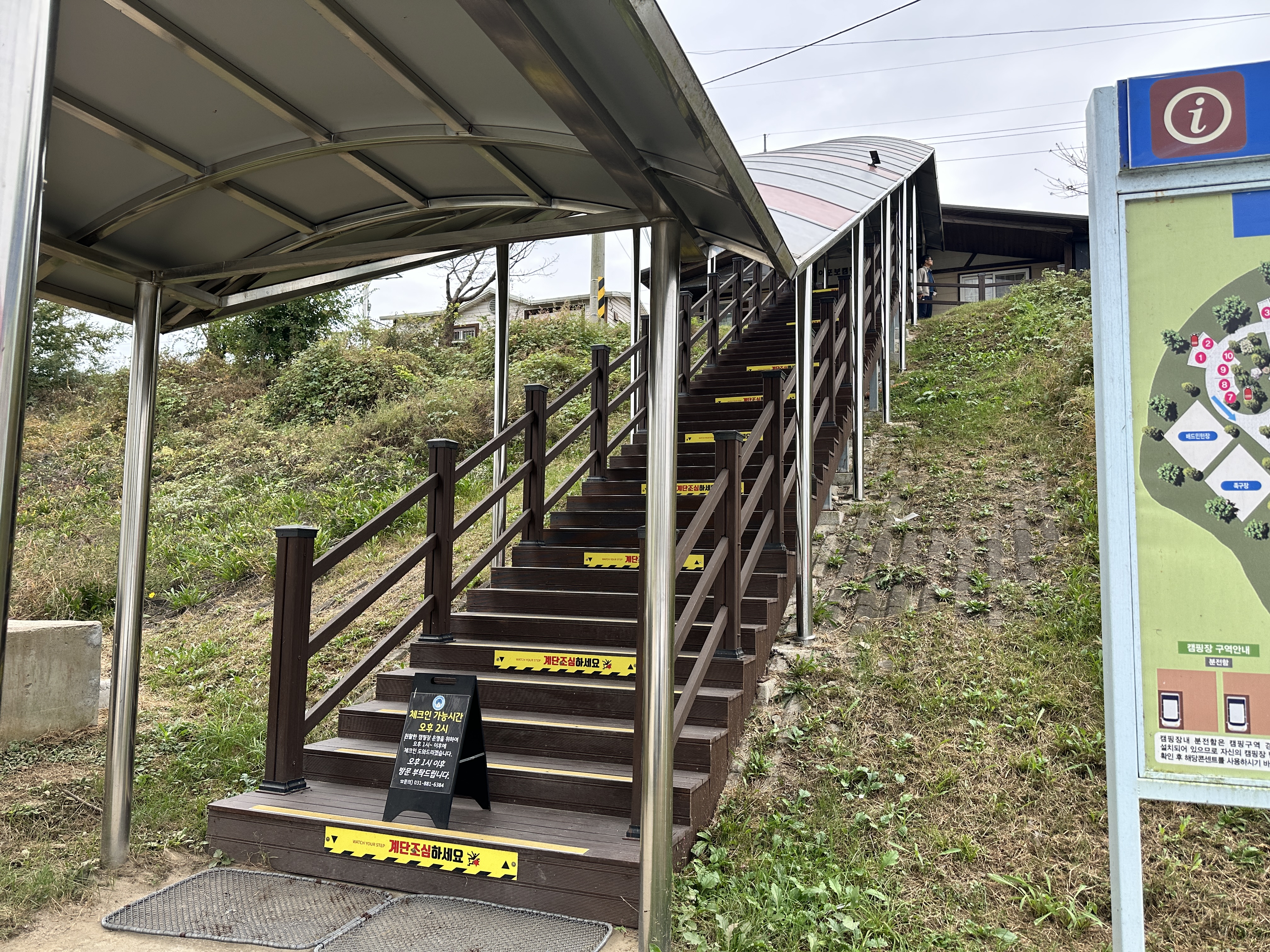 장보고 느긋하게 왔더니 15시가 넘어서 도착했다.  도착하면 먼저 관리사무실에 체크인을 해야 했다.