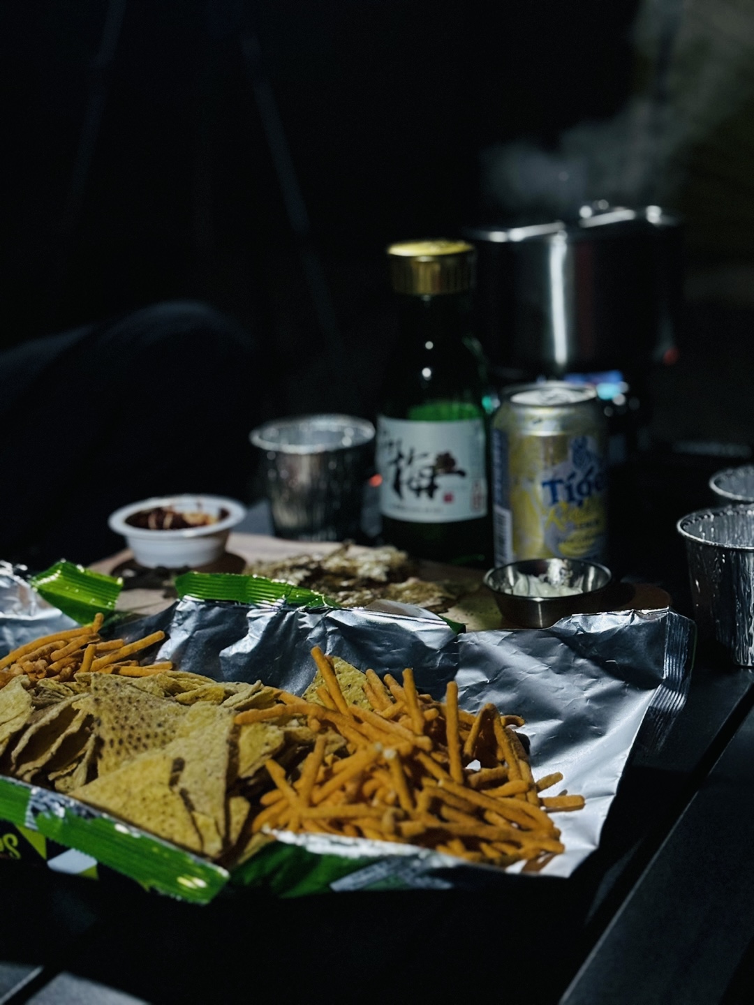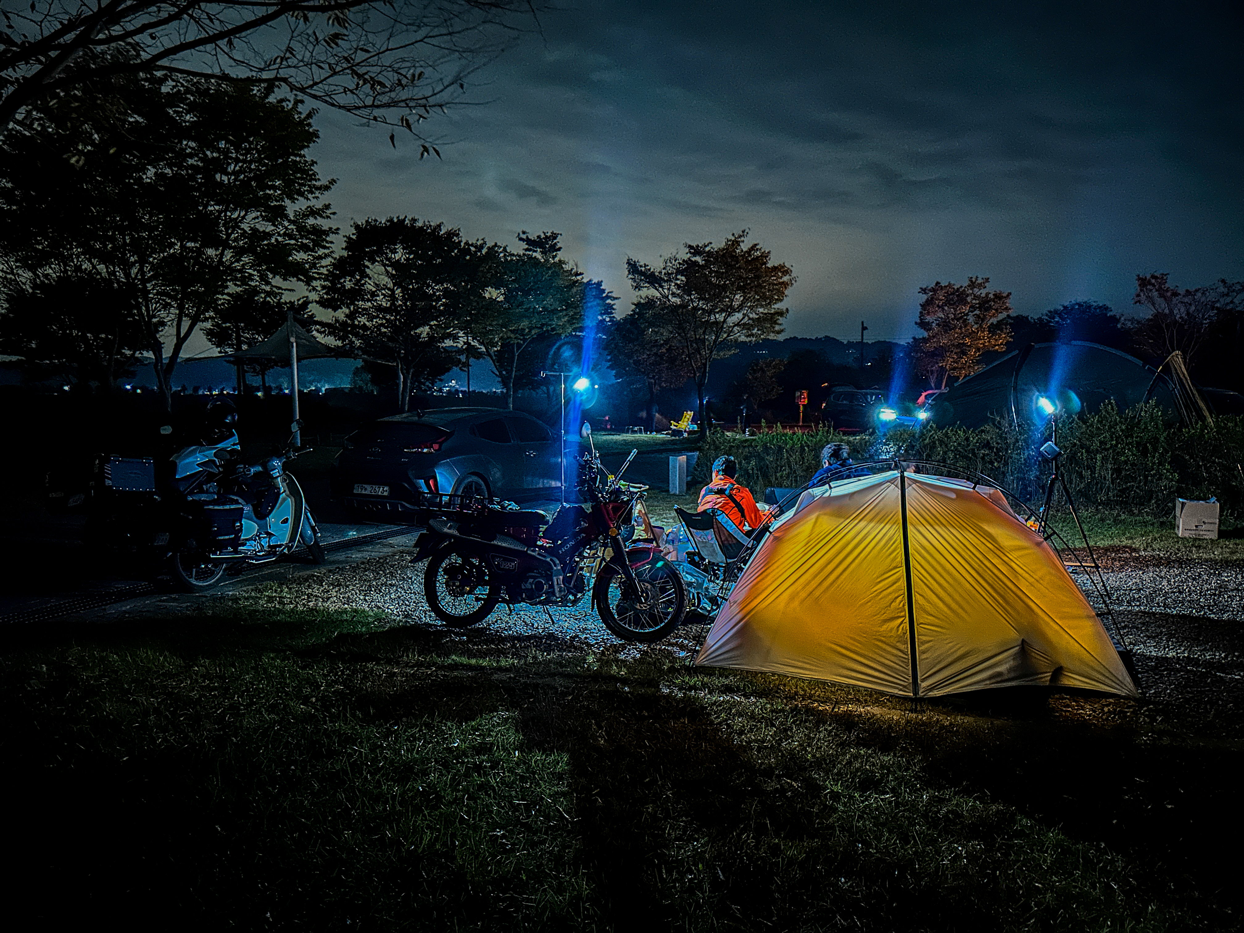 바이크 타는 친구들도 와서 같이 먹으면서 수다 떨고 하다 보니 어느새 어두컴컴.