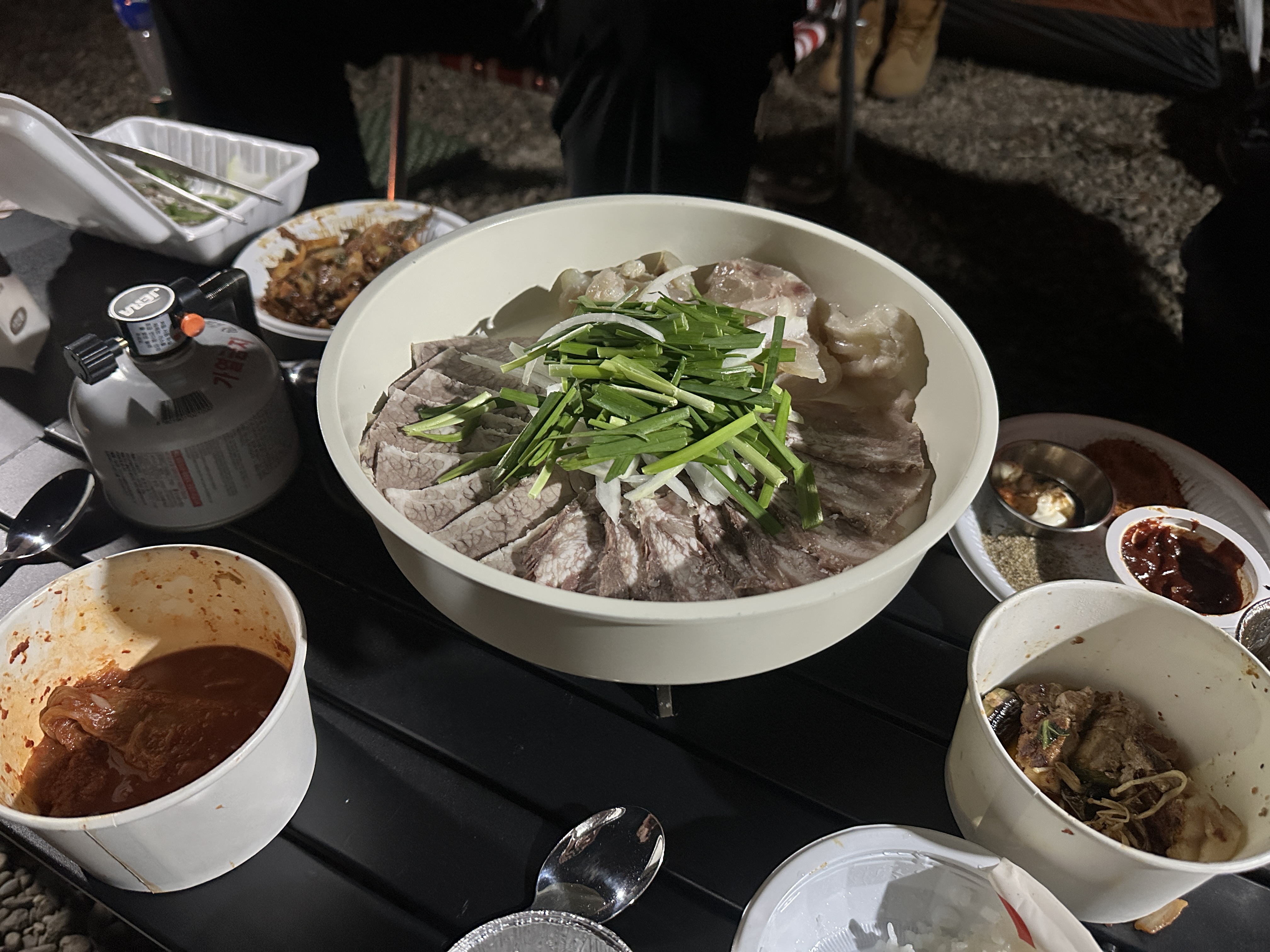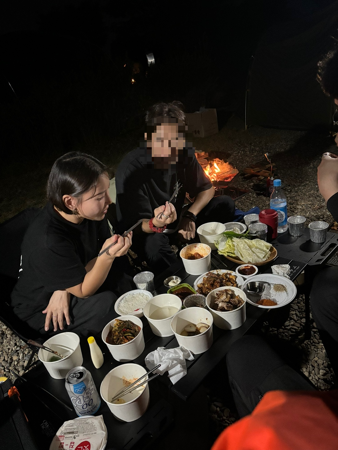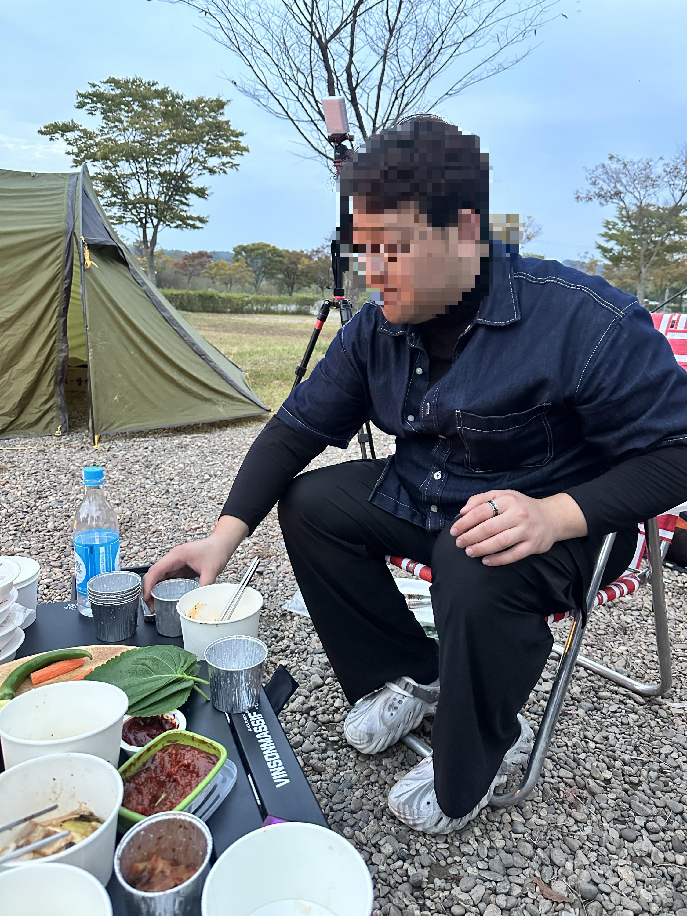사이트가 넓은데 다 못 쓰는 우리...흐흐 옹기종기 앉아서 정말 배 터지게 먹었다. 근데 다들 배부르다면서 계속 먹고 있다.
