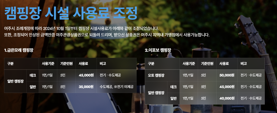 예약은 <이포보 오토캠핑장> 홈페이지에서 하면 되고 여주시민은 50% 할인이 되어서 반값에 갈 수 있었다.