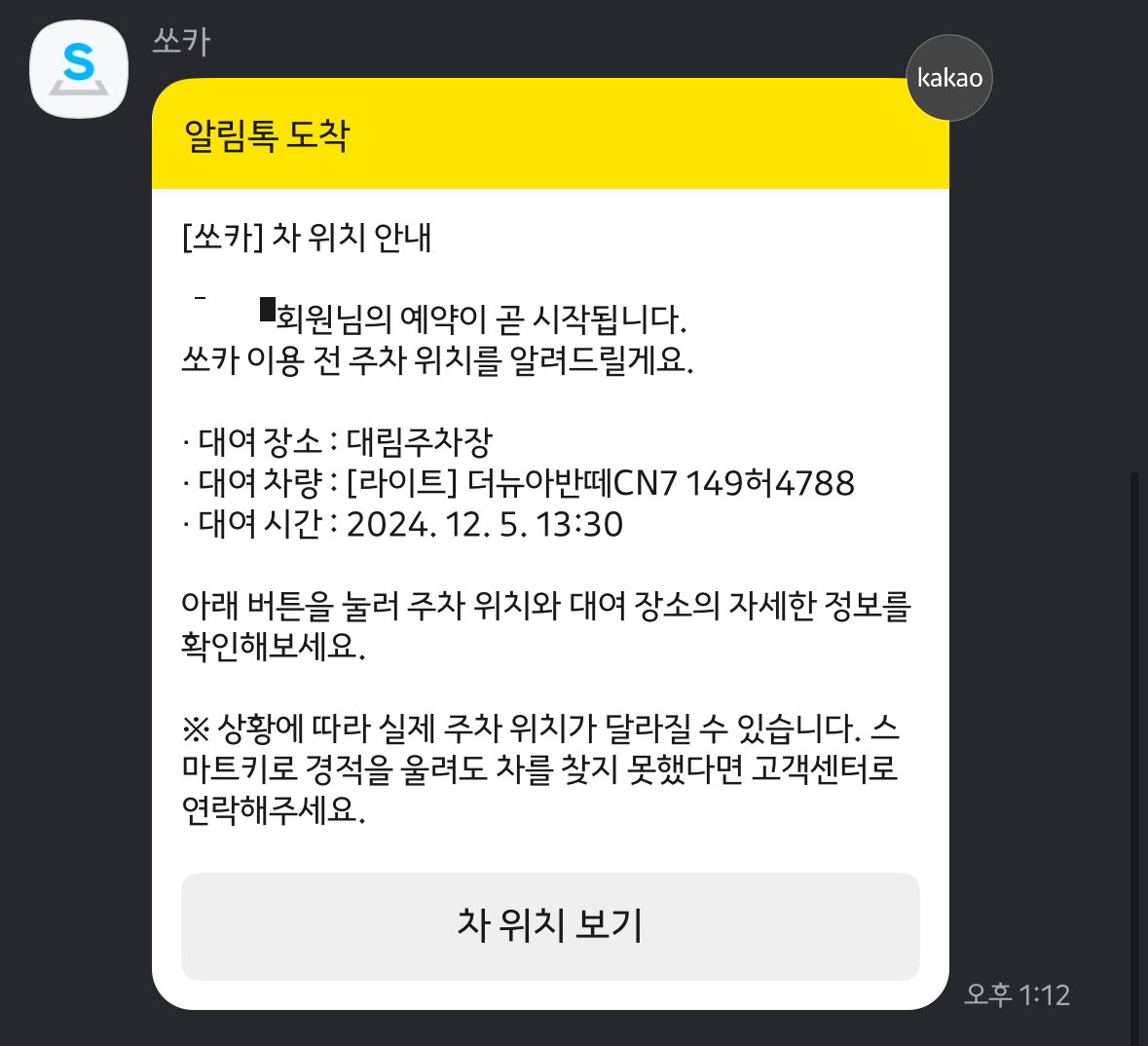 - 예약 시간이 되면 쏘카 앱으로 차량을 원격 제어하여 문을 열고 닫을 수 있습니다.
