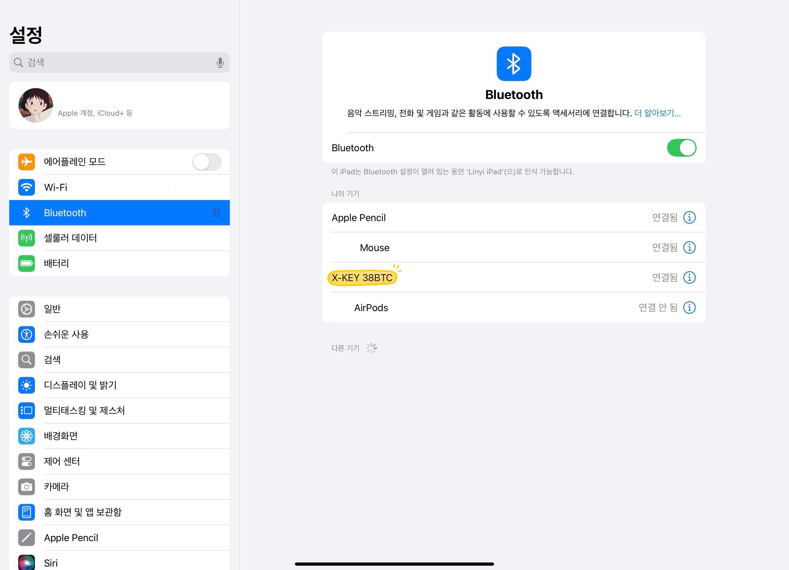 4. X-KEY 38BT를 선택하면 잠시 후 기기와 연결됩니다.