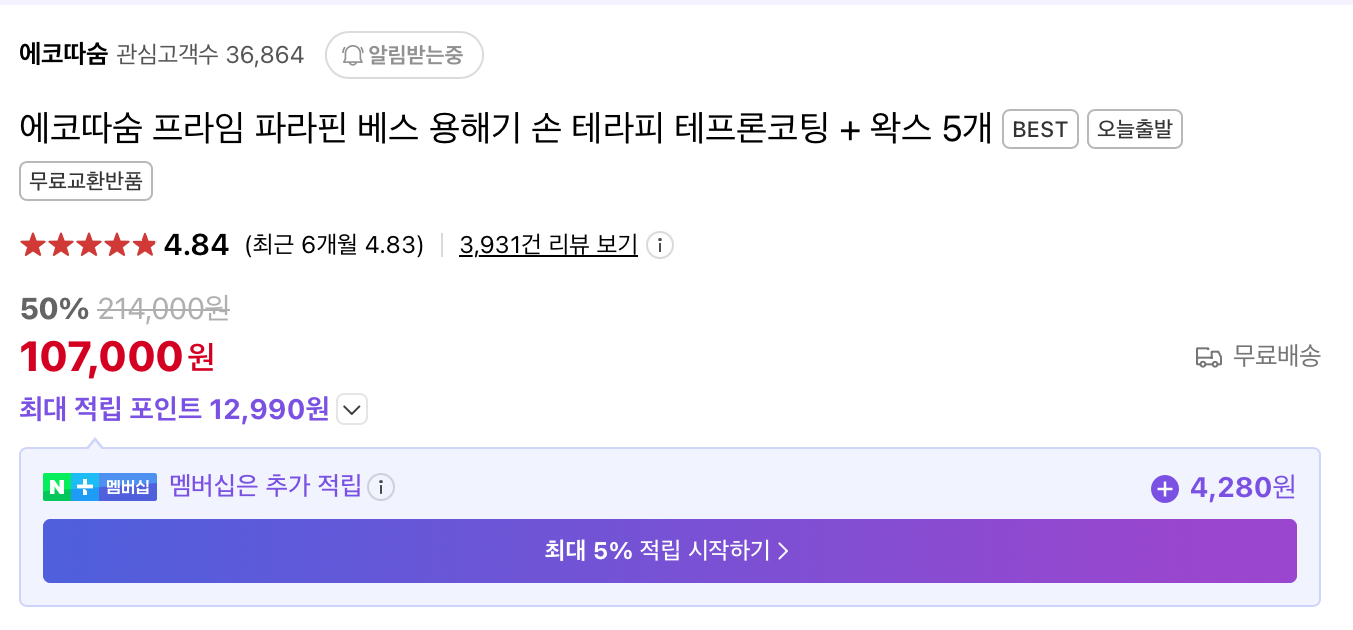 혹시 파라핀 치료기 구매를 고민 중이라면, 에코따숨 추천합니다! 😊