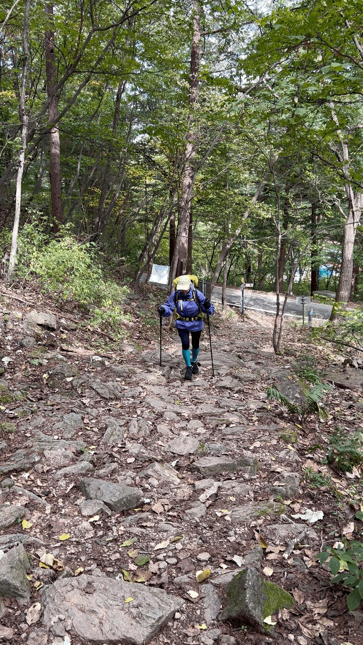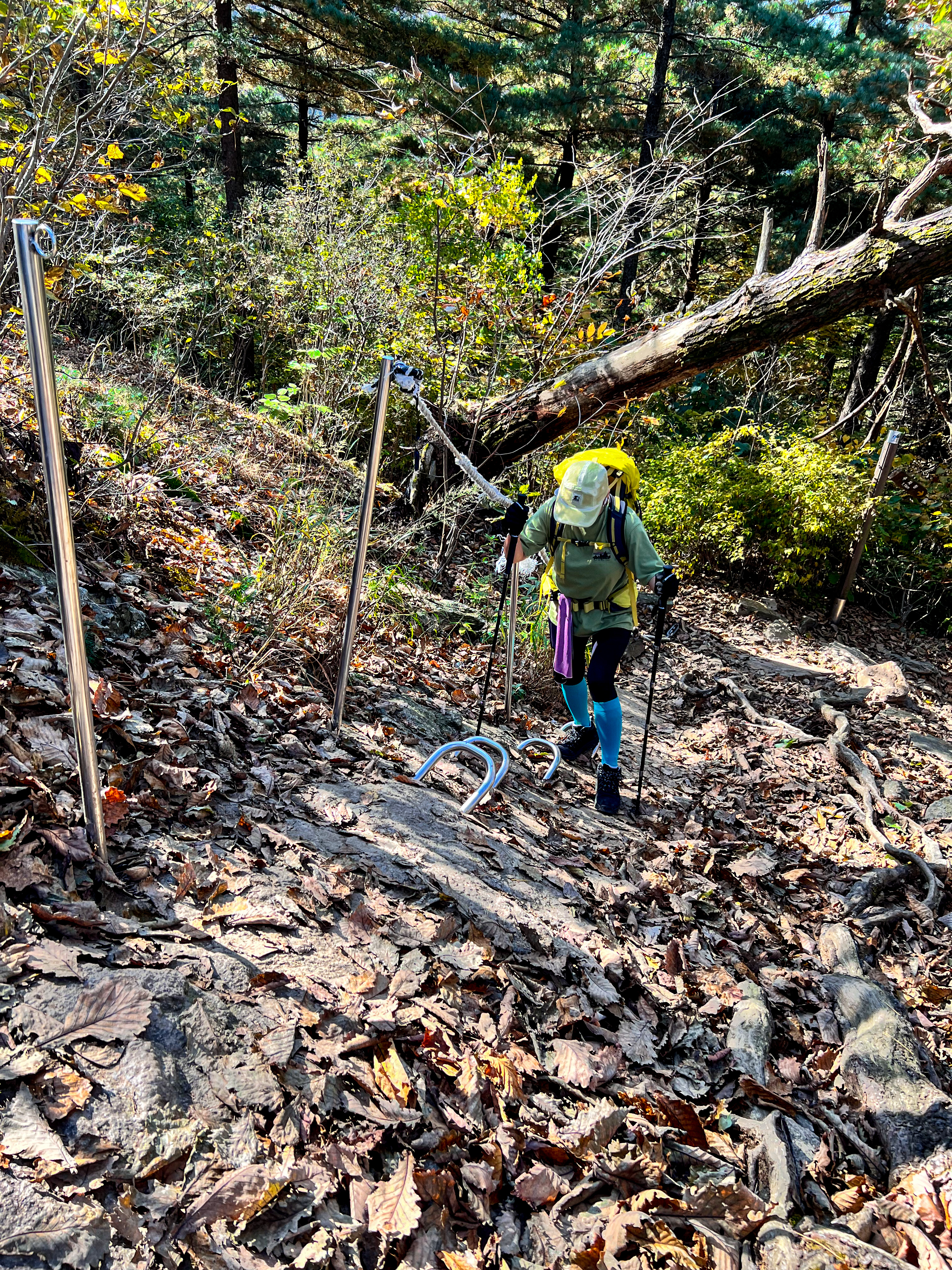 이 길로 쭉 걸어 가다보면 가파른듯 가파르지 않은 바위길과 뿌리 계단을 올라간다. 사진은 자주 찍지 못 했다. 잠깐 꺼내서 찍을 수야 있지만 페이스가 주춤하기에.. 어쩌면 내 사진이 더 많다. 헤헤