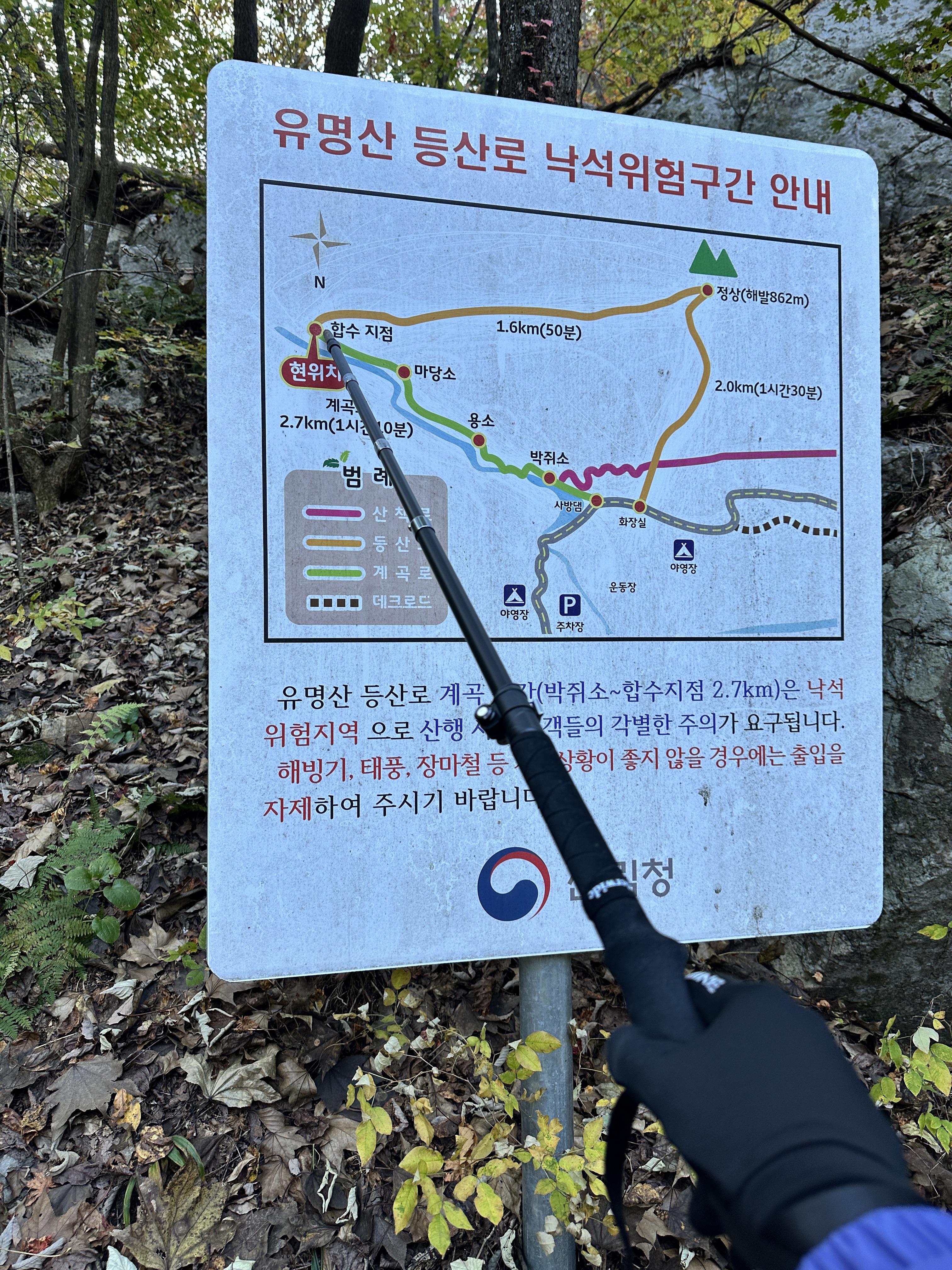 아침도 안 먹고 출발해서 출출한 상태인데 오들오들 떨고 와서인지 에너지바도 반 밖에 못 삼키고 입산했다. 입산시간은 동절기 14시 이후 X, 하절기 15시 이후 금지이다.