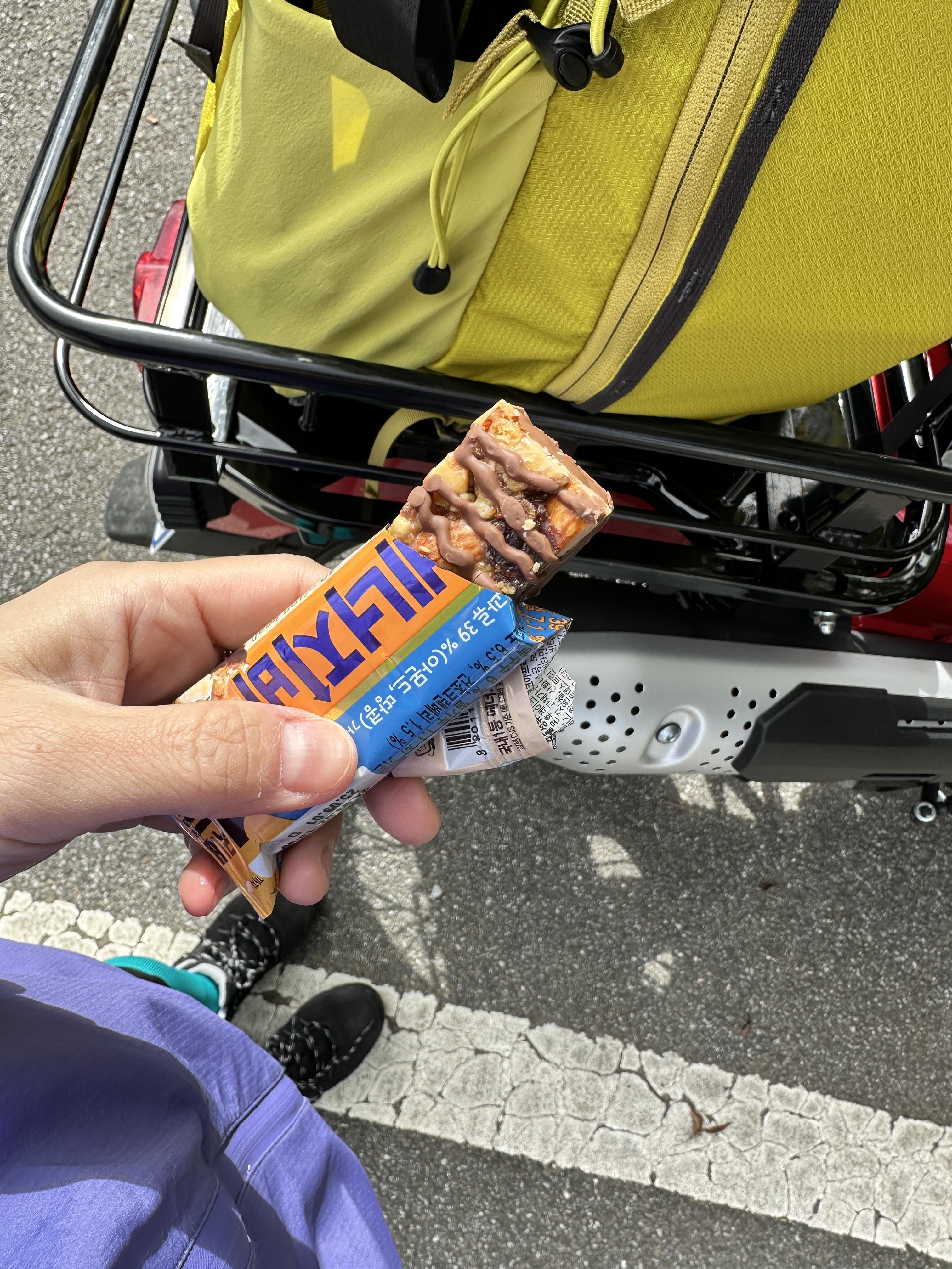 갑자기 추워져서 경량패딩, 방수/방풍까지 되는 바람막이, 산악 아웃도어 레깅스를 입고 갔다. 아웃도어 레깅스는 일반 레깅스보다 찢어짐이 없고 튼튼하다. 움직임에도 부담이 없다. 다만 오늘 같은 날씨엔 바이크는 자제해야겠다. 찬바람 맞으며 가니 너무 추웠다. 다음부턴 차로 이동해야겠다고 마음먹음.