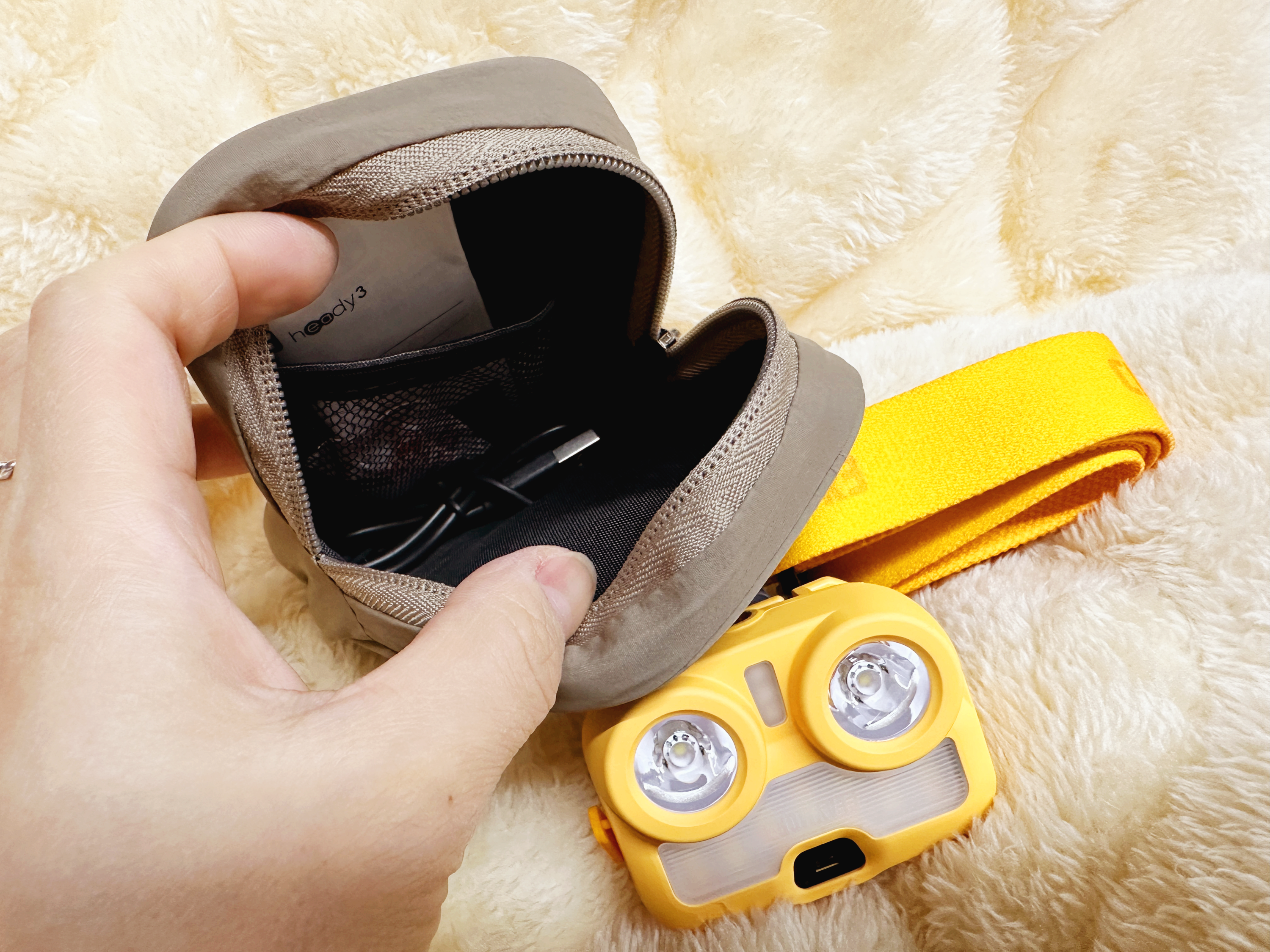 헤드랜턴을 파우치에 쏙 넣어서 배낭에 달수도 있어서 편리해요. 구성품은 클립, 헤드밴드, 파우치 이렇게 주더라구요.
