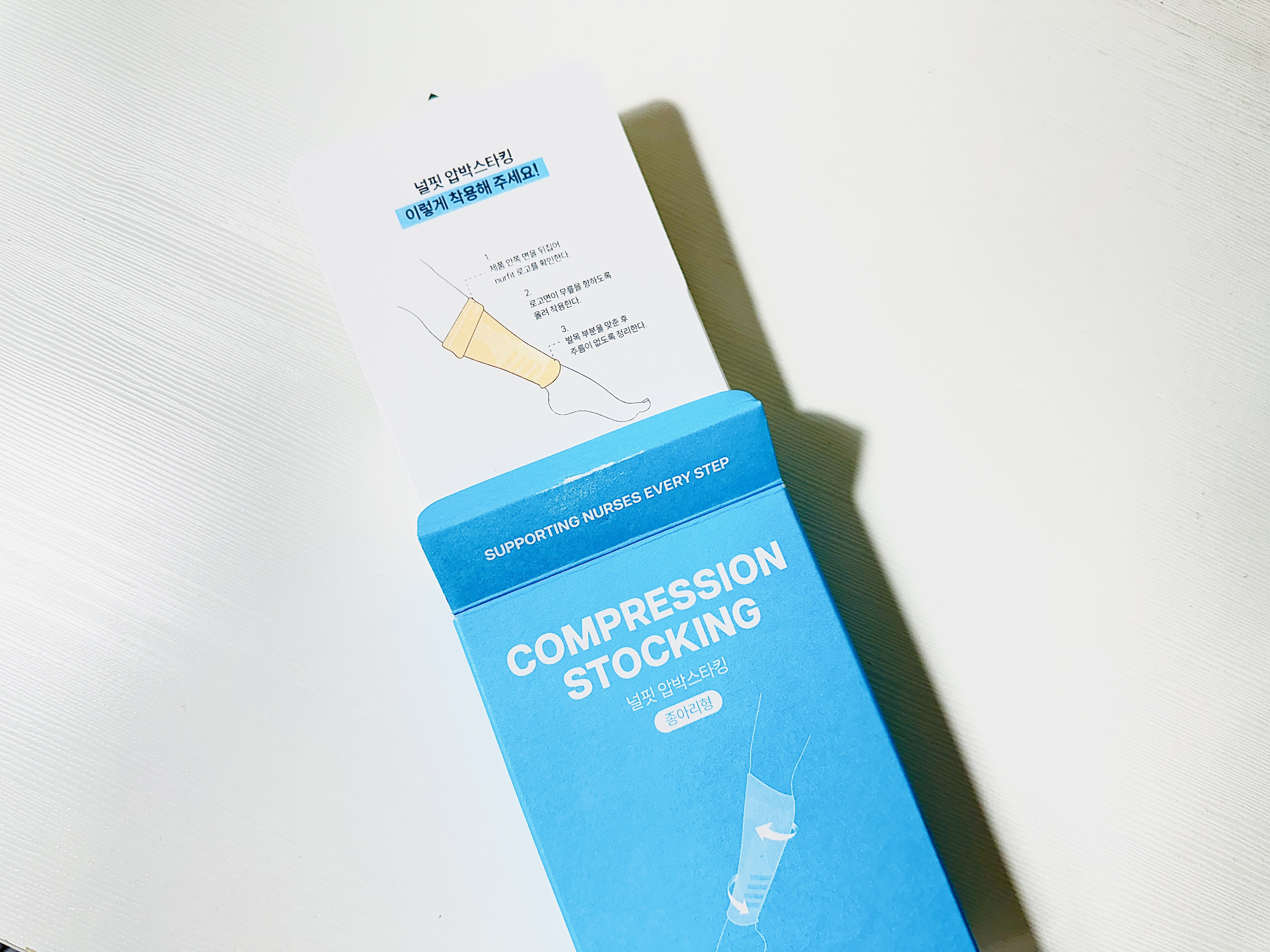 ✔️ 발목에서 종아리 방향으로 천천히 당겨 착용해야 압력이 고르게 분산됨