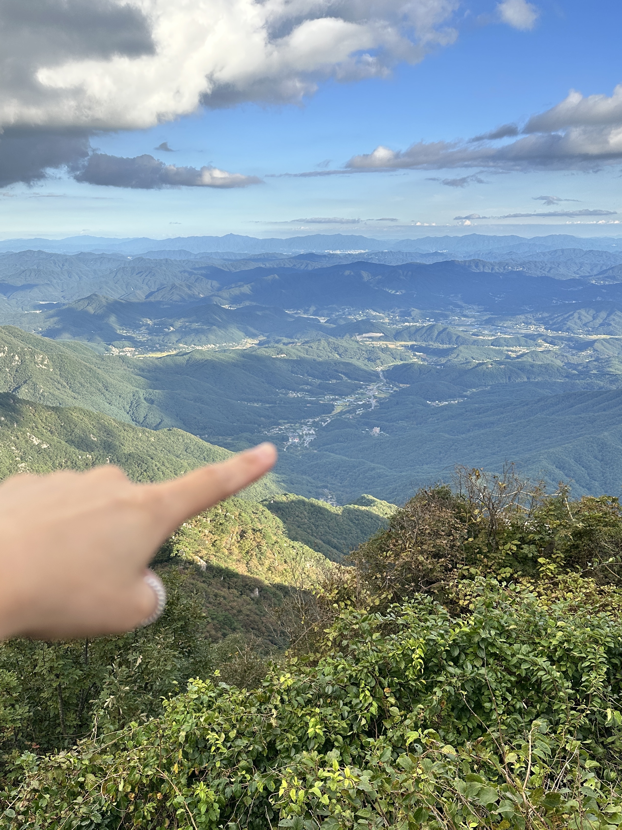 내려가다 보니 출발했던 장소가 보였다. 저기가 맞는지도 모르겠고 손가락으로 짚어보았다. 맞나?